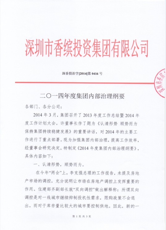 香繽集團(tuán)2014年治理綱要